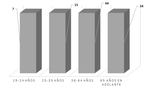 El grupo entre 19-24 años representa el 7% de discapacitados encuestados, el 15% representativo al segmento de 25-35 años, siendo la mayor concentración en la población de 36 -64 años con un 44% y el 34% restante, representado por los mayores de 65 años.