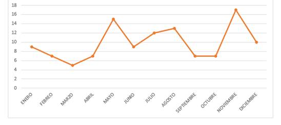 Gráfico 1. Femicidios en Ecuador año 2020 por mes.
