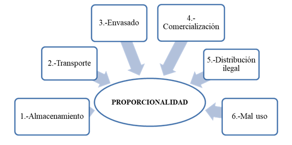 El principio constitucional de proporcionalidad en el caso de materia penal, busca vigilar la proporcionalidad entre delitos e infracciones, en el presente estudio sobre los delitos hidrocarburiferos y que, al momento de sancionar este delito, se tome en consideración la cantidad de productos derivados de hidrocarburos como, biocombustible y el gas licuado del petróleo, que haya sido almacenado, trasportado, envasado, comercializado o distribuido, en las zonas fronteras de nuestro país.