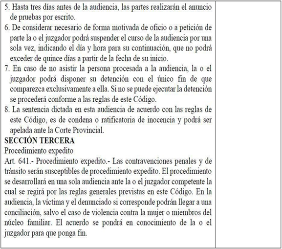 El procedimiento abreviado contemplado en el COIP, en la praxis otorga principios de celeridad y economía procesal Gutiérrez Campoverde et al. (2019) que a los de igualdad de armas (uniformidad), eficacia, legalidad y culpabilidad que lesionan garantías básicas del debido proceso, consagrados en la Constitución, se debe aclarar, que es preciso: Exhortar a la Escuela de Función Judicial para que establezcan un diseño curricular de formación de jueces y fiscales medidos en entender a la administración como un medio, evitando que las personas sean vistas solamente como objetos para medir eficacia judicial.