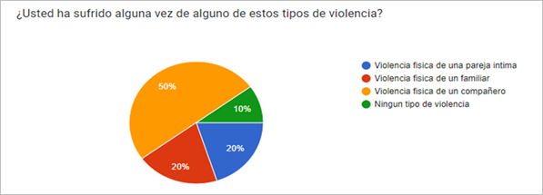 El 50 % de los encuestado son personas que no han sufrido de ningún tipo de violencia sexual y el 20 % sufren de violencia por parte de la pareja o por un extraño.