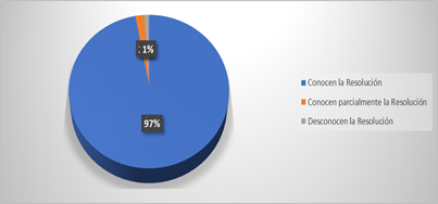 El resultado obtenido demuestra que el 97% de la población conoce la resolución, el 2% la conoce parcialmente y el 1% desconoce. (Figura 2).