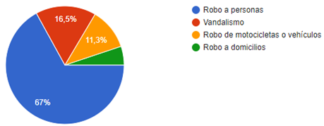 Se aprecia que la figura 2, que el 67,01% de los encuestados coincide que el incidente más común que declina el derecho a la paz social como bien común es el robo a personas; así como los altos índices de vandalismo, con un 16,49%. Estas son las actividades negativas que impactan directamente al derecho de la paz social, afectando la armonía en el sector de Alpachaca, en el periodo noviembre 2022 a marzo 2023.