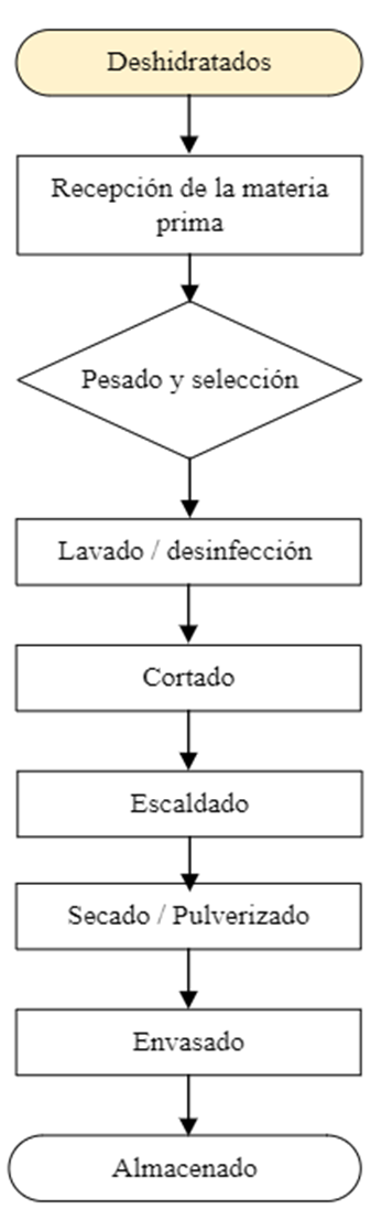 En esta sección se tomó en cuenta la industrialización alimentaria. A partir de la revisión en diferentes fuentes bibliográficas, se encontró que existe potencial en el consumo de estos productos sean preparados o mínimamente procesados, como es el caso de producción de despulpado, jugos, mermeladas entre otros procesos industriales con el fin de ser una fuente económica de algunos pobladores de comunidades o simplemente para alargar la vida útil de cada producto (Montero, 2018). En la figura 1, se describe en el diagrama de flujo a seguir para la producción de industrialización de jugos, néctares, mermeladas y deshidratados.