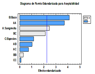 Figura 1. Diagrama de Pareto estandarizada para aceptabilidad.