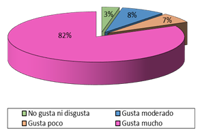 El 82% de los participantes expresó su agrado por el raviol preparado con un 70% de sangrecita, 30% de bazo de bovino y 15% de complementos. Un pequeño porcentaje (7%) lo encontró poco agradable, mientras que un 3% no lo disfrutó."