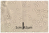 La mayoría de aislados produjeron microconidias de forma ovalada, elíptica (38–43 µm de largo), obtenidas en medio de cultivo CLA. Este resultado es confirmado por Schroers et al. (2009), Duarte Leal et al. (2016) quienes describieron formas de microconidias de ovaladas y elípticas de Fusarium spp en medio de cultivo CLA.