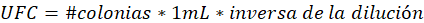 Para la cuantificación de colonias bacterianas se aplica la fórmula 1: