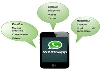 Esta propuesta plantea el Uso de WhatsApp como herramienta tecnológica para fortalecer el aprendizaje de varias asignaturas mediante la utilidad de los servicios que nos ofrece como por ejemplo la escritura, ensayos, narración de relatos, textos cortos donde se puede examinar los errores ortográficos, el uso de la ubicación y fotografías para posteriores localizaciones, el dialogo en lenguaje algebraico con el uso de la simbología, y sin duda alguna con esta aplicación establecer foros de discusión, lluvia de idea y lo más importante compartir textos, audios , videos, imágenes que son materiales complementarios en el proceso de aprendizaje. Este enfoque propuesto no implica que el estudiante recibe educación personalizada, más bien, cada uno recibe instrucciones cada día según sus necesidades, para ello se propone tres aspectos para su desarrollo.