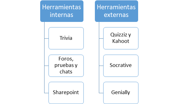 Figura 1. Herramientas tecnológicas internas y externas para solventar el aprendizaje activo