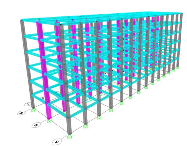 Los disipadores de energía calculados se colocaron de manera simétrica en la estructura desde los extremos 1A Y 14A, saltando un eje a partir de los mismos hasta coincidir en el centro con los ejes 7 y 8.