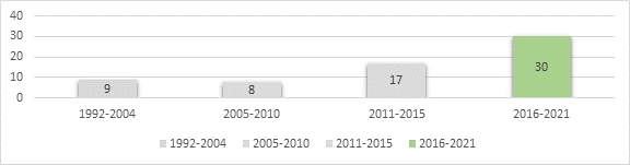 Se muestra que la mayor tendencia de investigaciones referentes a los principales factores que generan pérdidas postcosecha de hortalizas se concentra entre los años 2016-2021, denotando un mayor porcentaje de investigación que representa el 46,87%.