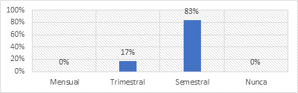 De la pregunta planteada el 83% de los encuestados establece que el mantenimiento preventivo se aplica a la maquinaria de forma semestral; mientras que el 17% restante establece que se lo ejecuta de manera trimestral, evidenciándose una brecha amplia en la ejecución de los mantenimientos lo que podría generar mayores averías por degaste de partes que no son intervenidas oportunamente.
