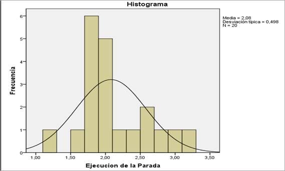 Figura 3. Histograma de frecuencias de la etapa preparación de la ejecución de la parada a partir del programa.