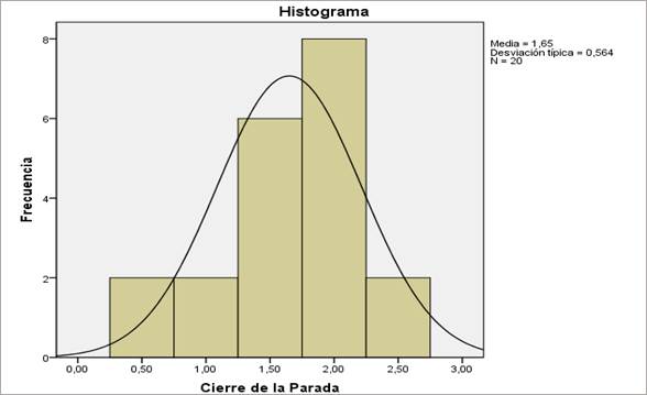 Figura 5. Histograma de frecuencias de los indicadores de la etapa de cierre de la parada.