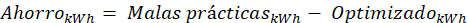 Resumen de ahorro energético (kWh y USD).