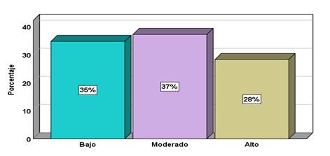 De acuerdo con la encuesta aplicada a los 202 clientes de la agencia de Juli de la Coopac “CREDICOOP - Arequipa", se pudo establecer que el 35 % (70) de los clientes encuestados tienen con un nivel bajo de fidelización, además se observa un nivel alto del 28 % (57 clientes) y un nivel moderado del 37 % (75 clientes).