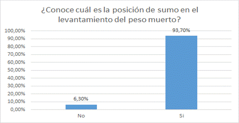 El 93% de los deportistas encuestados conoce cuál es la posición de sumo en el levantamiento de peso muerto.