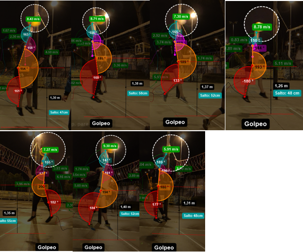 Figura 5. Ángulos, salto y velocidad en la fase de golpeo.