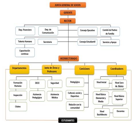En el estudio que se realiza de la Institución Educativa se observó que trabajan con una estructura lineal donde la Rectora es la máxima autoridad y es quien se encarga del desarrollo todos los departamentos existentes manteniendo una comunicación formal. Sin embargo, por negligencias administrativas no se ha llegado a realizar una estructura organizacional adecuada, para lo cual, a continuación, se dará una breve explicación de las funciones y procesos que debería tener cada departamento para el manejo correcto administrativo: