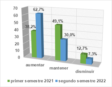 De acuerdo con los datos de la encuesta en lo referente al promedio de empleados de las MYPYMES se establece que el año 2020 existió una disminución de 4,99 puntos respecto al año 2019. Para el 2021 el 65% de las empresas presentan una tendencia favorable para mantener el número de empleados, un 18% de las empresas aumentarán sus empleados y un el 17% disminuirán sus empleados (Figura 6).