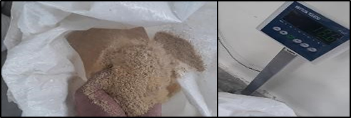 Se muestra las imágenes del peso de 18,9lb. De saponina luego del proceso de escarificado.