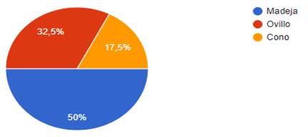 De acuerdo a los datos de la Figura 2, la presentación más adecuada al momento de adquirir la lana es la madeja (50%) seguido del ovillo (32,5%), y, por último, el cono (17,5%).