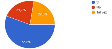 Los datos obtenidos en la Figura 8, permiten determinar que a pesar de que el servicio post venta no es la actividad principal de este estudio de factibilidad, un 55,8% de los encuestados si les interesa capacitarse en tejidos de accesorios y prendas de vestir, un 21,8% no está interesado en este valor agregado. Un 22,5% desconoce su intención.