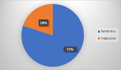 En relación a los datos generales de 120 personas y según la figura 1, en estudios correspondientes a 100% de los expedientes de la población, se encontró que el sexo femenino con un 72% de la población fue el más afectado por violación sexual.