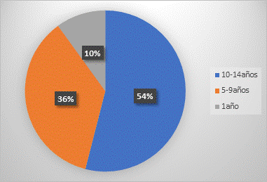 El grupo etario que predominó con un 54% de la población correspondían a las edades de 10 a 14 años seguidos de un 36 % del grupo de edad de 5-9 años, ningún paciente menor de 1 año fue encontrado con diagnóstico de abuso sexual, de procedencia urbana en su totalidad. (Figura 2). En este orden y considerando a los menores, tal como lo describe la Organización Mundial de la Salud (OMS), todos los profesionales de la salud involucrados en el cuidado de NNA tienen un papel importante en la prevención e intervención de la violencia sexual (Casas-Muñoz et al., 2023, p.2).