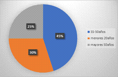 Al determinar la edad del abusador se encontró que el 45% eran adultos jóvenes entre 35-50 años, seguidos del grupo de edad de menores de 20 años con un 30%, y el grupo de edad mayores de 50 años con un 25%, como se observa en la figura 3.