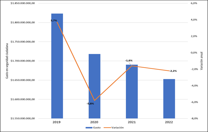 Figura 2. Gasto en seguridad ciudadana, 2019-2022.