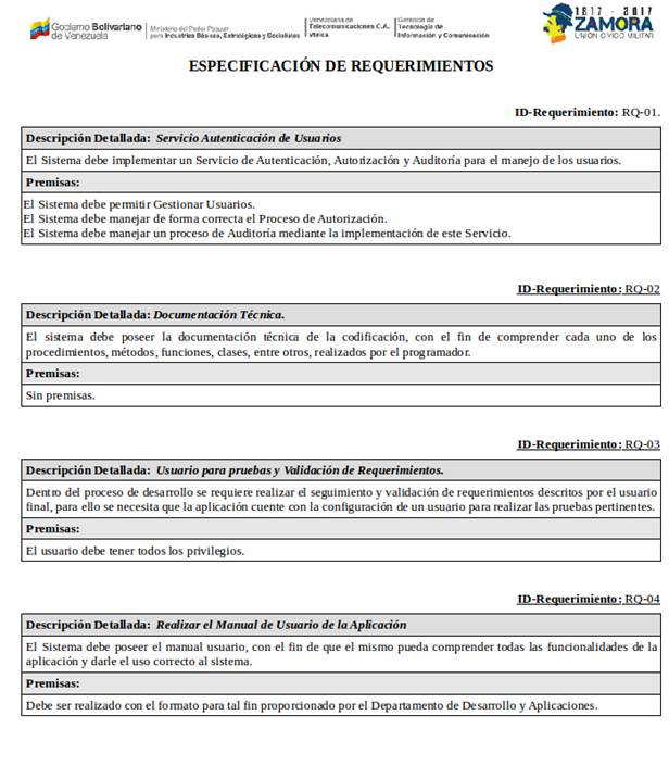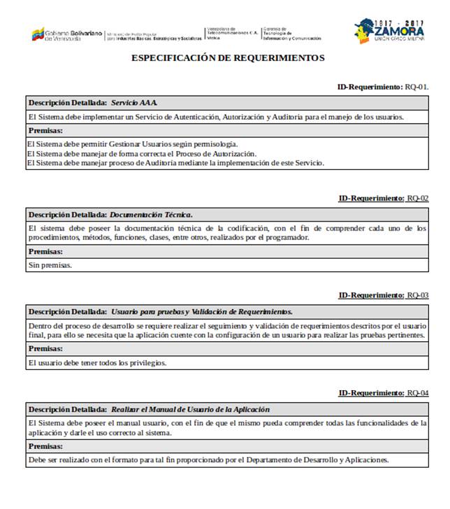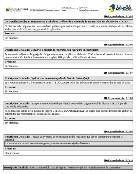 Para el diseño de las pantallas que conformaron el requerimiento solicitado, se tomó en cuenta los estándares visuales pautados por la Gerencia de Asuntos Públicos de VTELCA, en relación a la ubicación y constitución de la cabecera y pie de pagina de cada formulario y/o reportes.