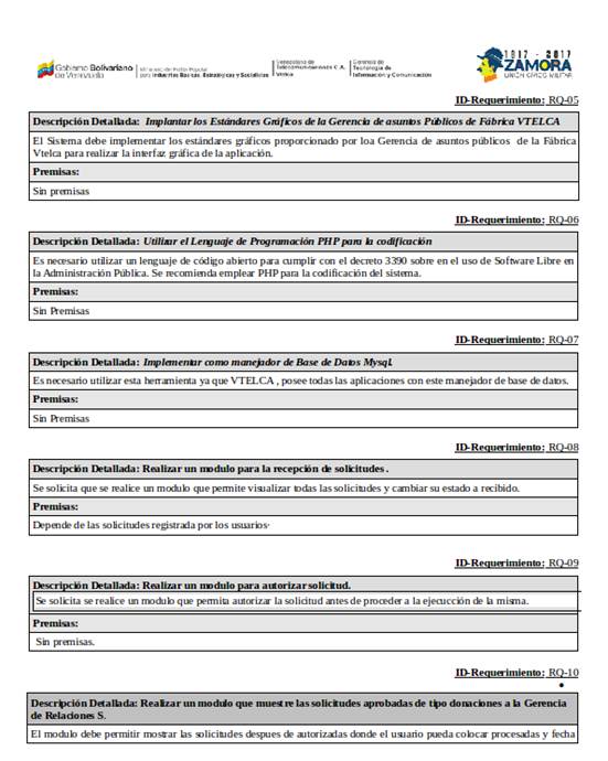 Sistema de Información Web para la Gestión de Solicitudes de jornada y donaciones a Venezolana de Telecomunicaciones C.A. VTELCA
