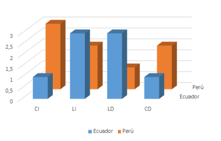 En cuanto a los resultados se tiene que para el cortical izquierdo (CI) se obtuvo un porcentaje del 37%, para el límbico izquierdo (LI) con un 25%, en cuanto al límbico derecho (LD) un 13% y para el cortical derecho (CD), un 25%, para los estudiantes del Ecuador, tal como se refleja en el gráfico 1.