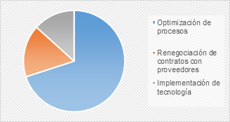 Estrategias de reducción de costos: el análisis de la encuesta muestra que la estrategia más utilizada por las empresas encuestadas para reducir los costos de producción es la optimización de procesos, con un 70%, le sigue la renegociación de contratos con proveedores con un 16.67% y la implementación de tecnología con un 13.33%. La mayoría de las empresas priorizan la mejora interna de sus procesos como la principal estrategia para reducir costos, mientras que un porcentaje menor se enfoca en aspectos externos como la negociación con proveedores y la adopción de tecnología (Figura 3).