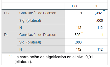 El indicador participativo – en grupo y desempeño laboral, tiene una significancia de 0,000 y una correlación de 0,392 catalogándose en una correlación positiva alta, lo cual implica que ambas variables interactúan entre sí para beneficio mutuo.