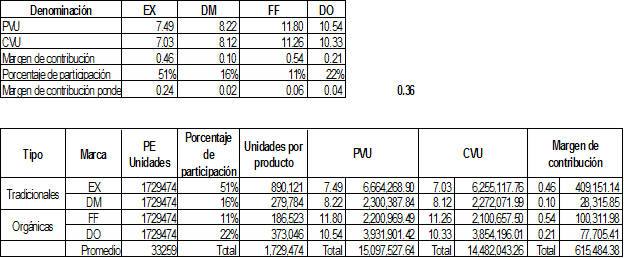 Clasificación de costos marca Del Monte orgánica.