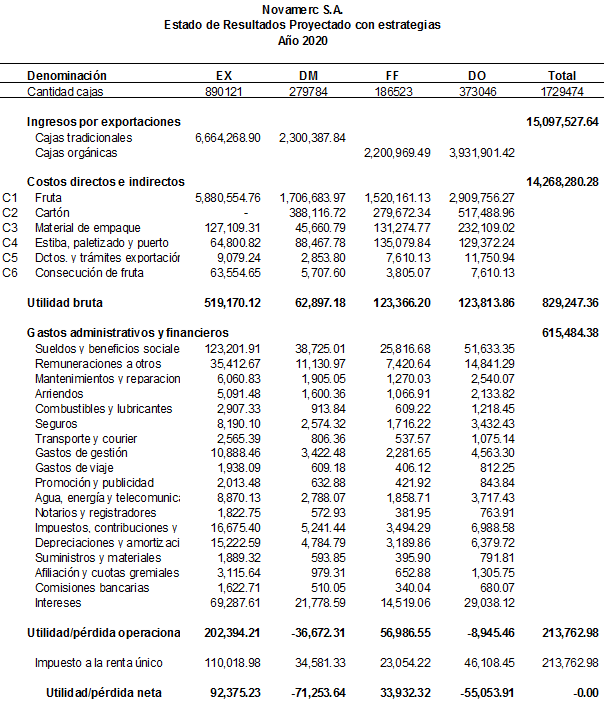 Si se logran implementar estas estrategias, el presupuesto para el año 2020, en base a los históricos, ya no estaría en pérdida como se demostró anteriormente.