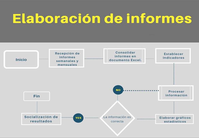 Elaboración de informes semanales y mensuales. Entrega de informes al coordinador.