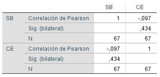 El resultado -,097 arroja una correlación negativa alta con significancia bilateral de ,434, lo cual implica que ambas variables se correlacionan en sentido inverso, al acercarse el resultado a -1, se puede hacer mención que existe una relación casi perfecta entre las variables, lo que permite determinar que ambas variables tienen correspondencia directa entre ambos.