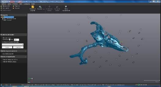 Es una plataforma de software 3D simple, potente y totalmente integrada que funciona en sinergia completa con todas las tecnologías de digitalización 3D, es decir, con este software y el escáner, se puede obtener la información de la nube de puntos del objeto escaneado tridimensionalmente (ver figura 5). [Creaform Inc., 2014]