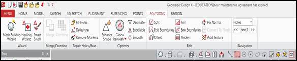 Figura 11. Herramientas de "POLYGONS" para post-tratamiento de malla.