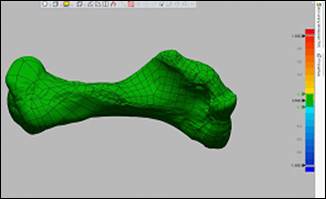· Rojo: Significa que existe una desviación positiva de la reconstrucción con respecto al malla., es decir en esas partes existe un exceso de material. La tonalidad de los colores puede ser: amarillo, anaranjado y rojo, siendo el último, el de mayores valores de desviaciones existentes.