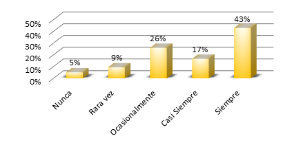 El 6% afirman que nunca se mantiene un sistema de inventario manual o informatizado, seguido del 5% que corresponde a rara vez, ocasionalmente el 21%, casi siempre el 26% yfinalmente el 42% correspondiente a siempre deduciendo que en la zona tres del Ecuador la mayor parte de encuestados sigue manteniendo un sistema anteriormente mencionado.