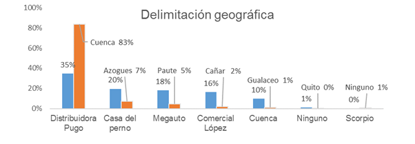 Figura 3. Delimitación geográfica de los principales almacenes de Gualaceo y a que ciudades acuden más a su compra.