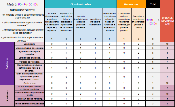 Figura 5. Análisis y ponderación de un análisis FODA de la situación actual en la que da inicio de actividades la empresa.