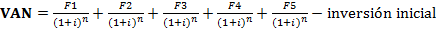 Para el cálculo del VAN y TIR, se utilizó las siguientes formulas.