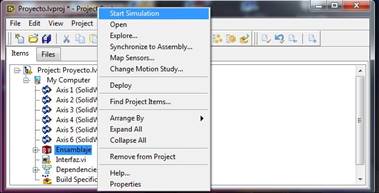 Ejecutar Star Simulation: en el ensamblaje que se encuentra enlazado a Labview.