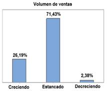 Para el volumen de ventas la gran mayoría de los directivos (71.43%) considera que se mantiene más o menos invariable el número de clientes. Hay un grupo de directivos (26.19%) que considera un crecimiento en los clientes, aunque son aquellos que tienen a los bolsos y recuerdos como productos de mayor rentabilidad. Para los sombreros de paja toquilla se asume entonces el estancamiento en las ventas. También se observa una mayor concentración de las ventas en los meses de septiembre a diciembre, lo cual refiere a ciertos comportamientos de los clientes en ese periodo. En cuanto a la calidad de los productos casi la totalidad de los directivos (95.2%) considera que se ha medido el grado de satisfacción de los clientes siendo este calificado de bueno en el 100% de los casos.